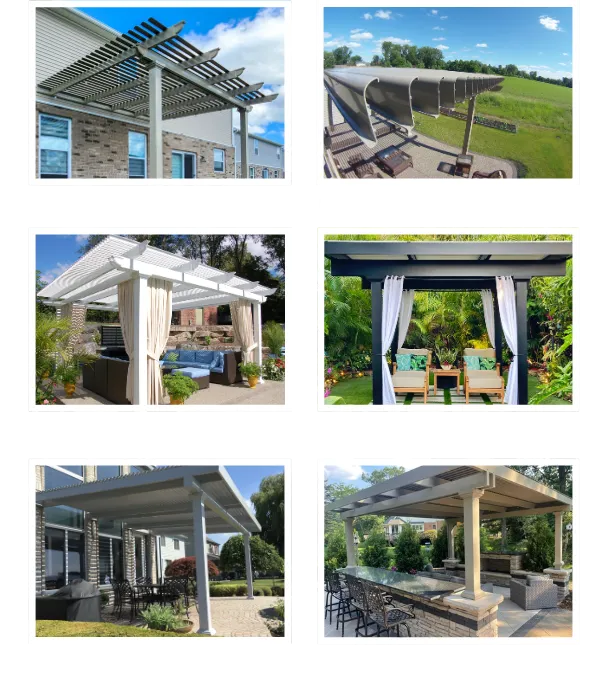 A variety of pergola styles, including garden arbor, operable, free-standing, and attached models